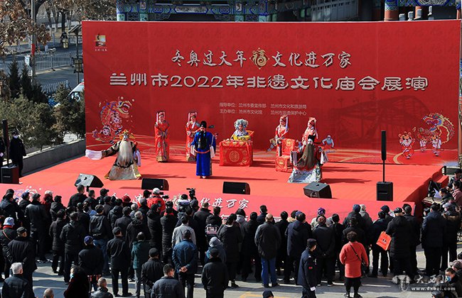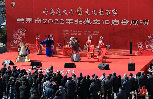 兰州市文旅局党组书记、局长王柠在开幕式上致词说,今天是喜庆吉祥的大年初二,我们相聚金城黄河岸边,隆重举办“冬奥过大年·文化进万家”兰州市2022年非遗文化庙会展演活动。举办本次非遗文化庙会展演活动,是为满足广大市民群众春节期间文化活动需求,丰富市民群众精神文化生活,营造浓厚的节日氛围。在做好春节假期疫情防控工作的前提下,特别组织策划了内容丰富多彩的非遗文化展演活动。活动中有铿锵威武的太平鼓,惊险灵动的舞狮,技艺精湛的刻葫芦、泥塑、剪纸技艺展示,朴实豪放动人的秦腔经典折子戏等年味浓厚的文化活动。