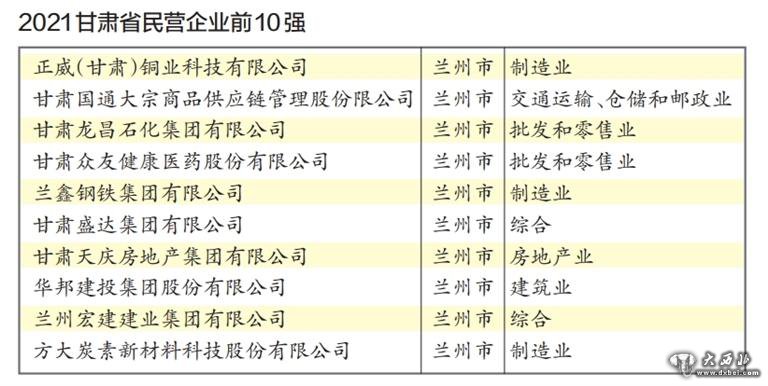 在2月21日召开的甘肃省工商业联合会(总商会)十二届六次执委会议上,2021年甘肃省民营企业50强榜单新鲜出炉,其中兰州市23家企业上榜。
