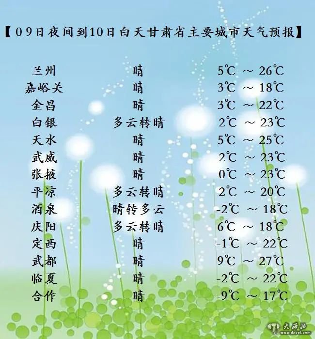 今天夜间到明天白天,全省各地晴或多云,其中酒泉、嘉峪关两市有4-5级偏东风。