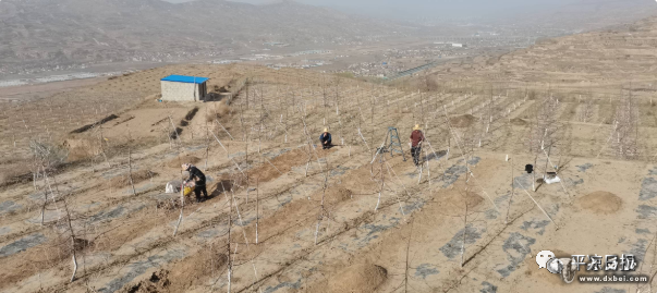 南部山区是庄浪山地有机苹果的主要种植区域。春暖大地,一棵棵苹果树犹如标枪列阵于层层梯田之上,亮黄色的粘虫板随风摆动,勤劳的果农在果园里追肥、修剪、拉枝,绘就了一幅喜人的春耕图。