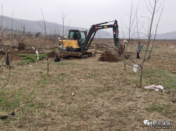 去年,万泉镇被农业农村部认定为全国乡村特色产业十亿元镇。作为庄浪县种植苹果最早的乡镇之一,在更早享受到果产业红利的同时,也需要提早面对老果园改造的现状,特别是早期建在河川地的果园,由于土层浅,已经无法承载乔化树发达的根系。根据县上安排,万泉镇从今年开始统一组织挖除了这部分果园,这几天,正干得热火朝天。
