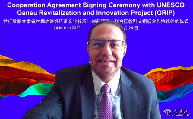 艾威达先生指出,世界银行贷款1.8亿美元实施甘肃丝绸之路经济带文化传承与创新项目,支持甘肃发展文化和旅游业,是世行独特的项目,项目实施在甘肃省文化和旅游厅的有力组织下进展良好。今天,甘肃省与联合国教科文组织签署合作协议,将是项目发展历史性的一刻。近年来,甘肃省在文化和旅游发展政策制定和投资建设等方面开展了卓有成效的工作,尤其是应对新冠肺炎疫情防控所采取的文化和创意改革成果显著,甘肃的经验作法已经在世界银行、联合国教科文组织发布的“城市、文化和创意框架”中得到总结和推广。本项目将在联合国教科文组织、联合国世界旅游组织、世界银行的大力支持下对甘肃省重新定位,并借助丝绸之路(敦煌)国际文化博览会的平台和设施,打造“丝绸之路黄金通道”文化交流中心、全球文化中心。