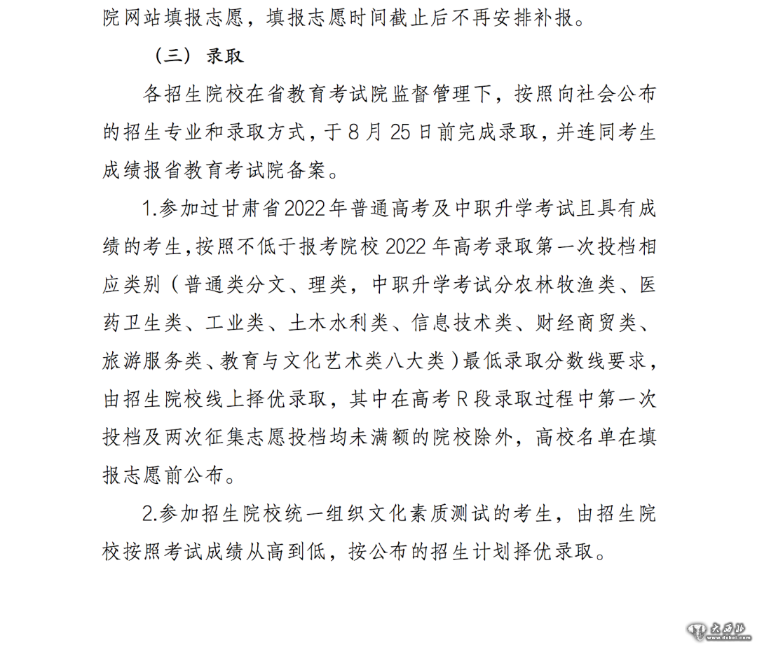 1.2022年甘肃省高等职业教育分类考试招生综合评价录取实施方案