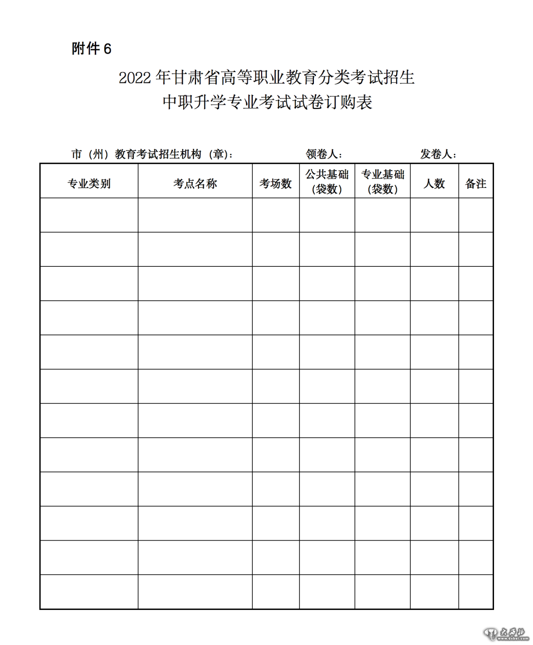 6.2022年甘肃省高等职业教育分类考试招生中职考试试卷订购表