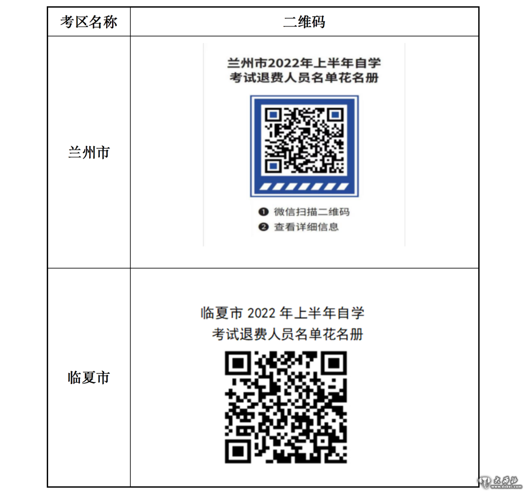 (一)网上填报课程并交纳考试费的考生申请退费,须于4月22日前按要求将申请材料电子版提交至所报考区指定电子邮箱(见附件2)。电子版申请材料拍照或扫描应清晰完整,按考生姓名+准考证号命名形成压缩包;兰州市、临夏市采取二维码采集信息方式,考生扫描二维码(见附件3)后根据要求填写信息、上传材料电子版。各考区教育招生考试机构进行核实,确定是否符合退费条件,超过受理时限或图像不清晰完整的视同自愿放弃。