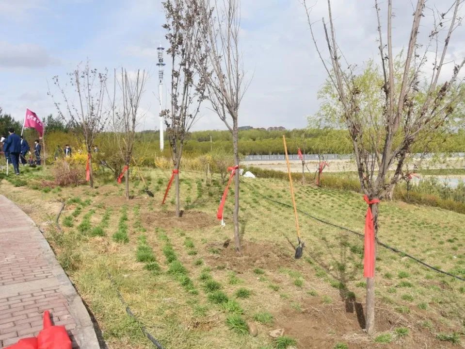 植树现场,挥锹铲土、扶正树苗、填平树坑、踩实新土……大家井然有序、齐心协作。经过一个多小时的辛勤劳动,新栽的135株树苗错落有致,一抹抹“新绿”栽植于堆秀山上,在明媚的春光中展现出勃勃生机。