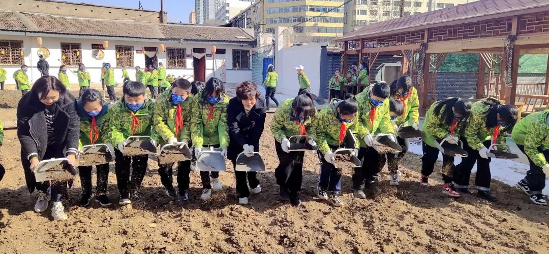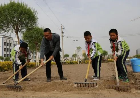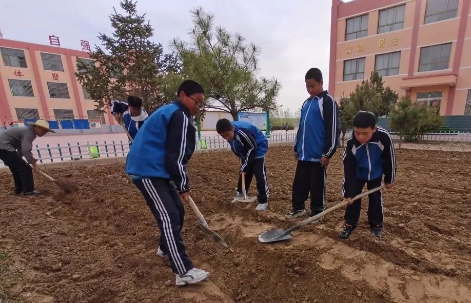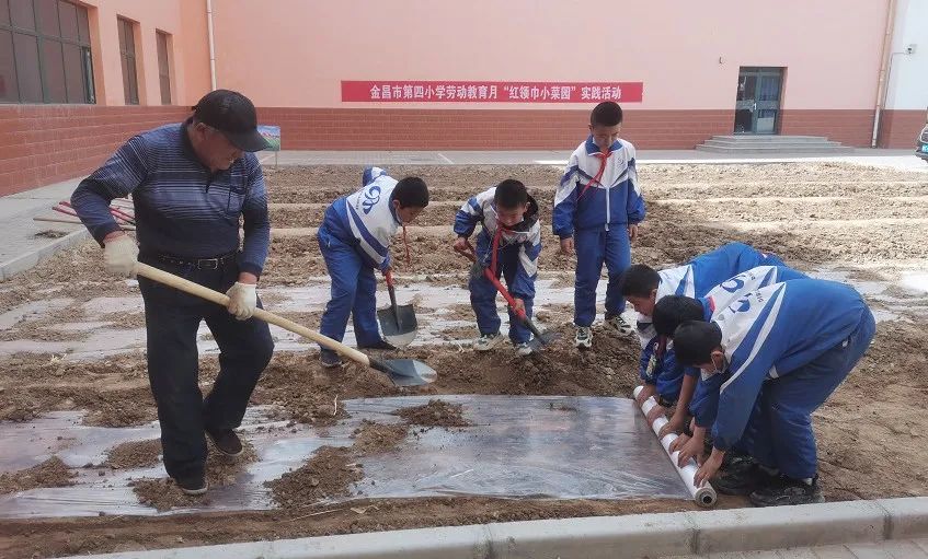 金昌市第四小学开展了“红领巾小菜园”劳动教育活动。活动前,老师对除杂草、翻地、播种、铺地膜等劳动技能向学生做了展示和说明。活动中,同学们热情高涨,忙得不亦乐乎。拿着铁锹的同学们虽然动作笨拙,却使出浑身力气参与劳动、体会劳动的快乐。不一会儿功夫,师生齐心协力圆满完成了种植任务,大家都脏了衣服,黑了小手,但脸上却洋溢着笑容。