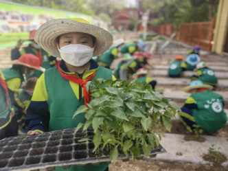 城关区红山根小学的校园农庄里热闹非凡,孩子们在学校田园里播种,开启别样的劳动体验。