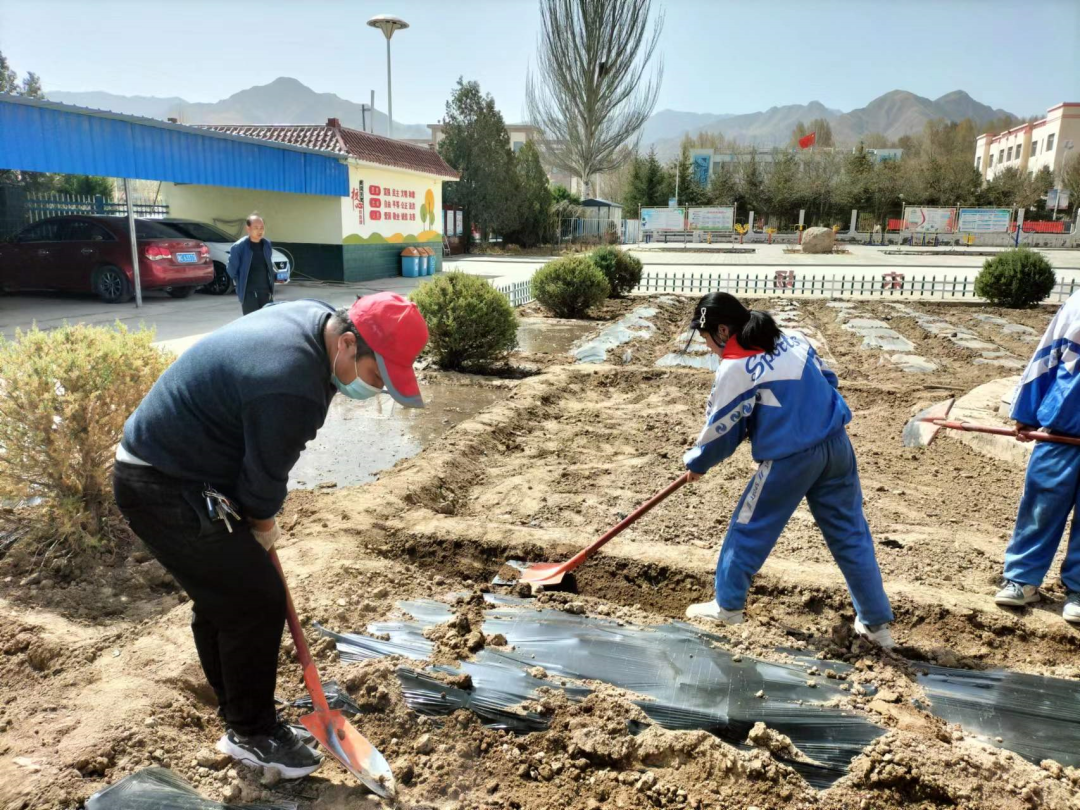 临潭县王旗镇陈旗中心小学组织同学们在划分的11块种植区域种植蔬菜和农作物,激发孩子们热爱自然,热爱劳动,热爱科学知识,感受生命的神奇和珍惜粮食的意识。