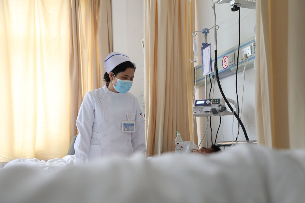 图为脱亚莉在庆阳市人民医院护理病人。新华社记者张睿摄
