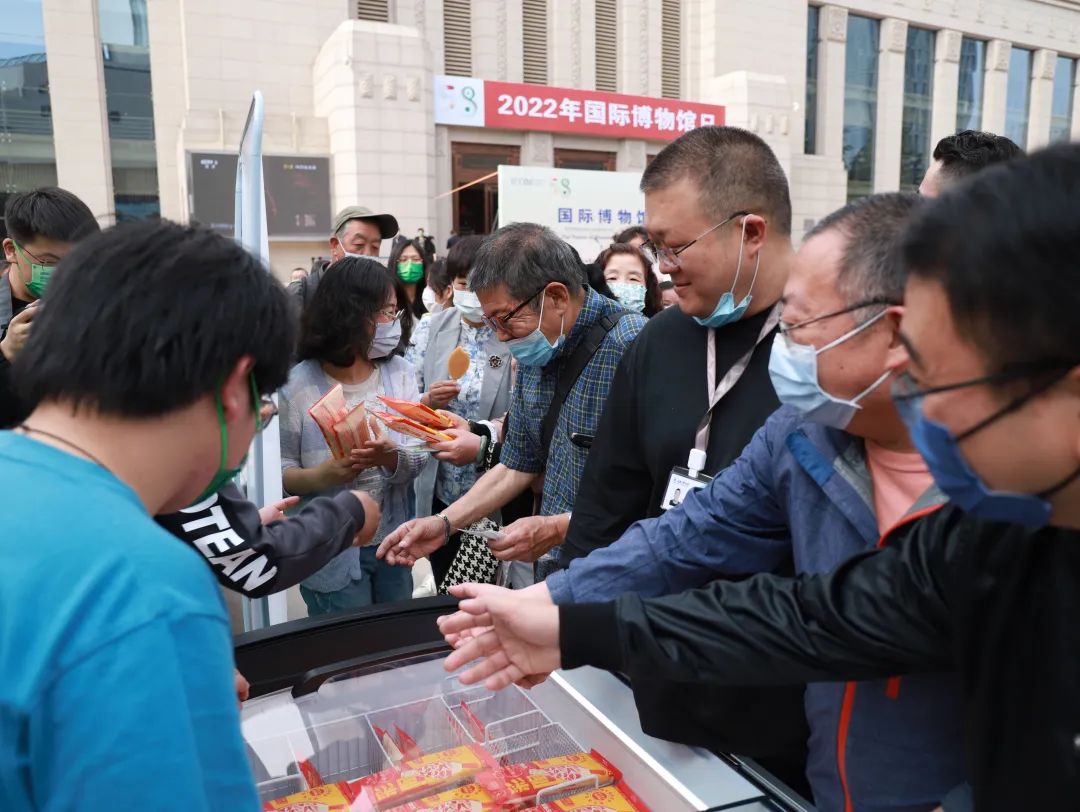 甘肃省博物馆最新研发的原创文创美食——彩陶软儿梨文创果汁雪糕也赢得了不少观众的的喜爱。彩陶软儿梨文创果汁雪糕,造型取自于甘肃省博物馆“明星”馆藏文物——人头形器口彩陶瓶,呆萌的表情和可爱的造型,已经成为甘博“网红”打卡文物。雪糕不仅造型讨喜,内容还具备“真食力”,软儿梨含量大于50%。入口充盈清新的梨香,润喉又不甜腻,保留梨本身的颗粒感,口感独特,清凉解渴。现场品尝的观众都表示“好吃到惊喜”。