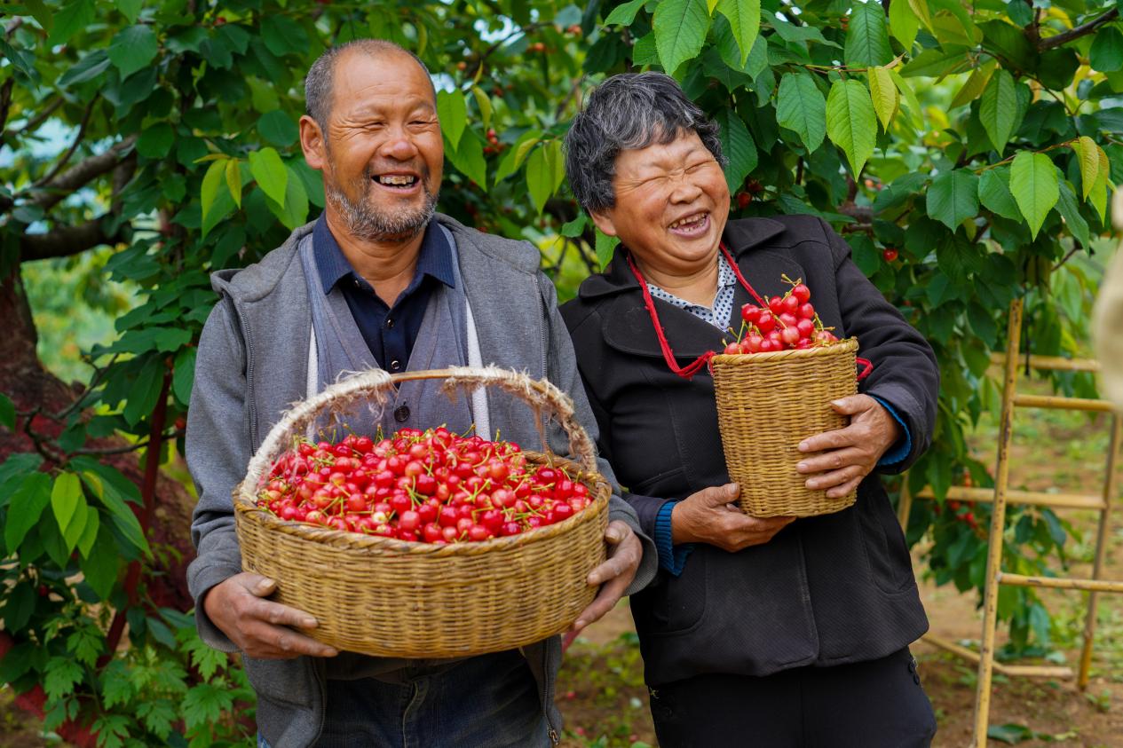 成县小川镇西狭村大樱桃丰收,村民笑开颜。