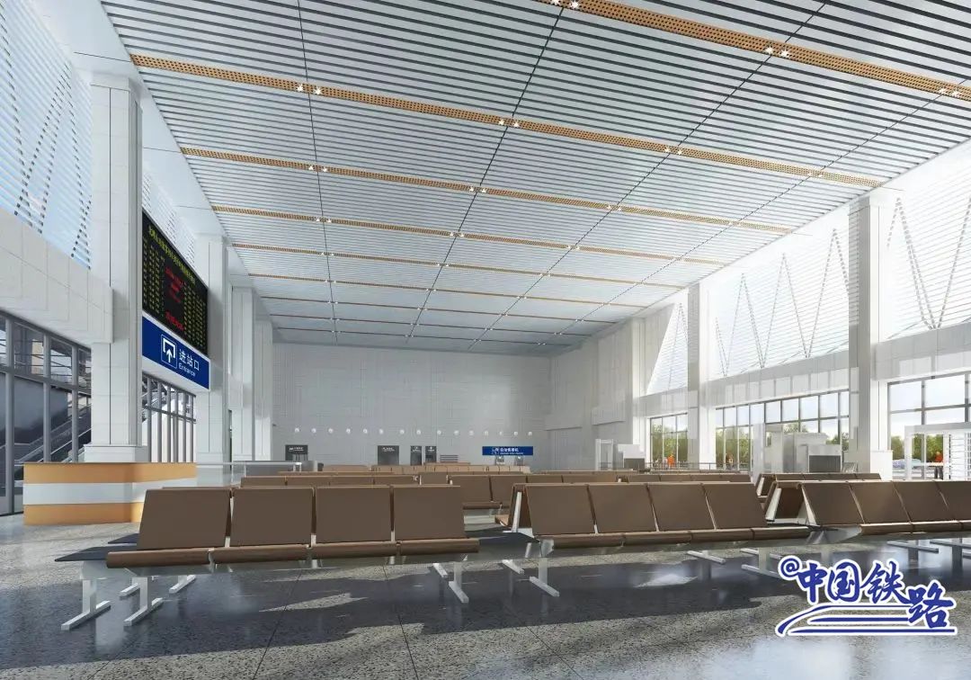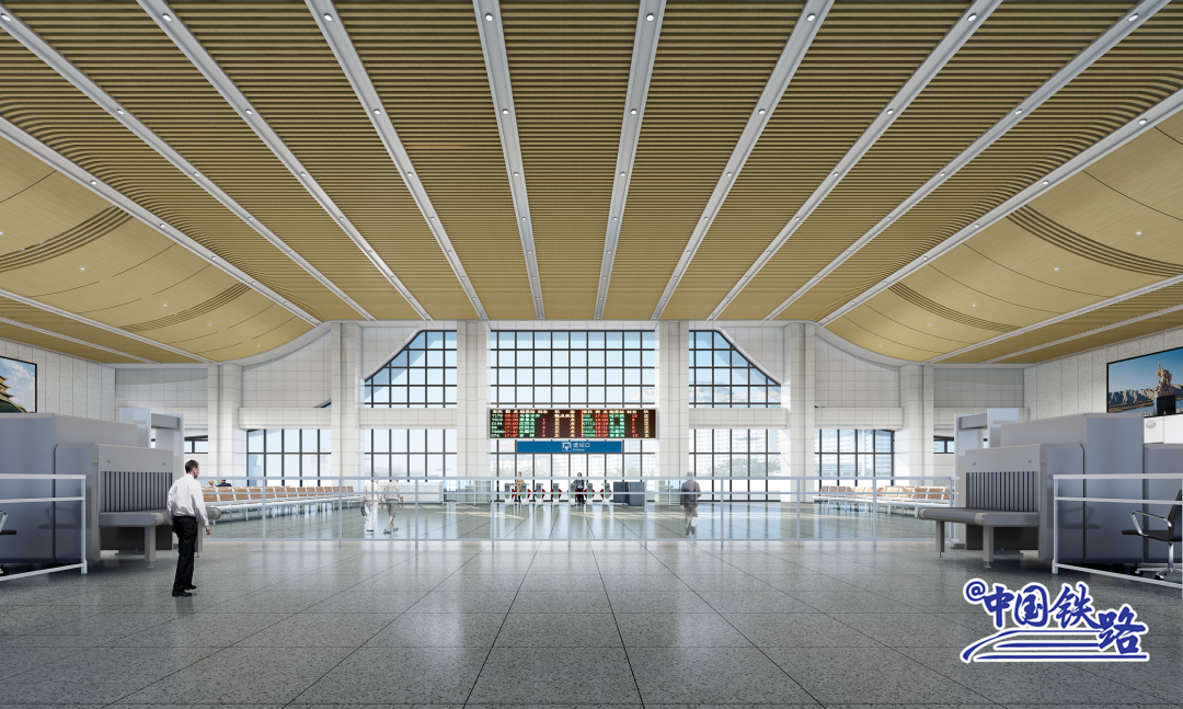站房采用横向曲线条窗造型,增加建筑细节,同时融入“山形水意”的设计理念,意在表现白银市优美的自然山水风貌。候车厅支柱采用三角造型,体现工业感,与白银工业城市的历史传统相契合。