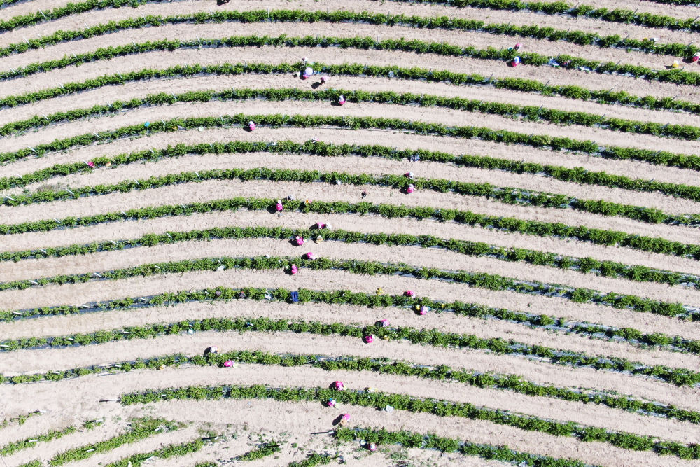 这是6月14日在甘肃省定西市通渭县李家店乡姚川村拍摄的金银花种植基地(无人机照片)。新华社记者马希平摄
