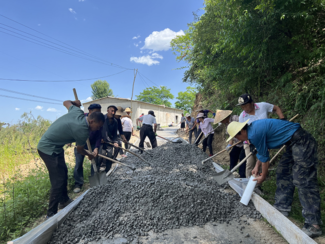 近日,在黄陈镇中湾村石家坡社内主巷道上,村民们正头顶烈日、紧张忙碌着,运送水泥、平整路面……,现场分工明确,井然有序。谈起修路这件事,村民们纷纷竖起大拇指。
