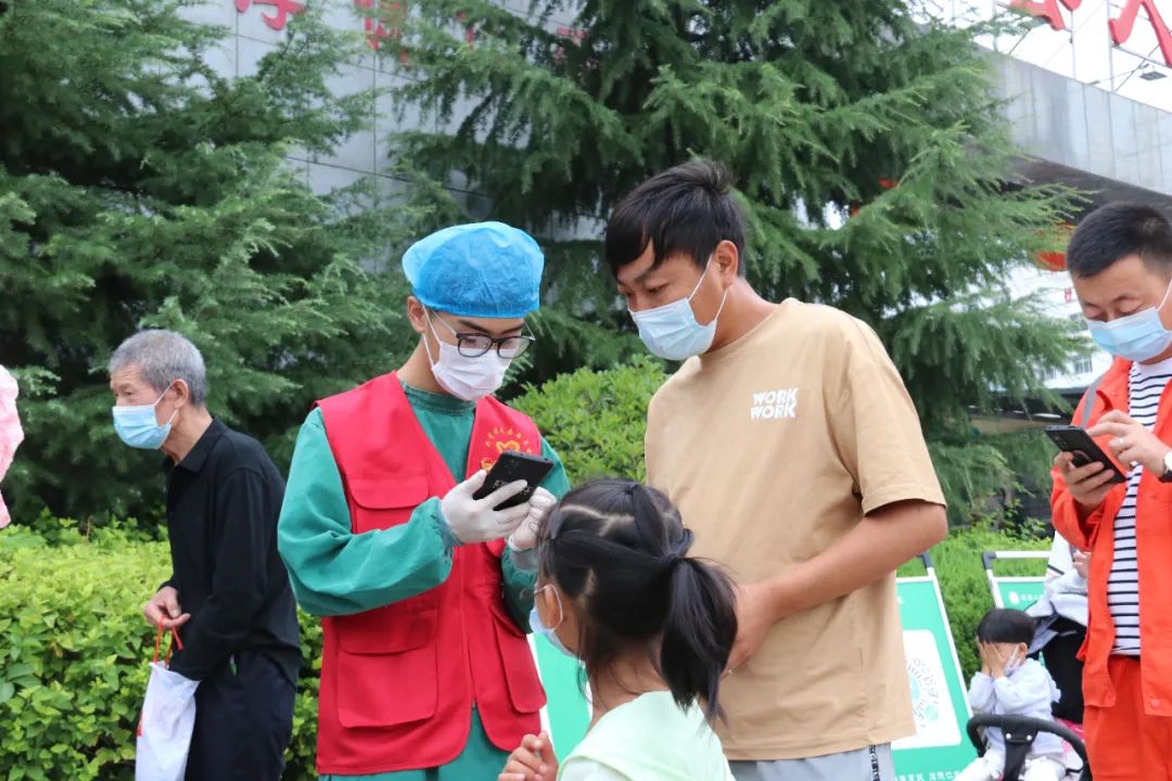 “请大家戴好口罩,间隔一米,用手机提前做好核酸预约。”“有谁不会使用手机预约的,请找我们!”在县医院门口核酸检测的队伍里,几个身着志愿者红马甲的身影穿梭在队伍里,他们有的提着免洗消毒洗手液,有的提着大喇叭维护现场秩序,时不时停留在有需要帮助的人旁边,引导帮助他们操作使用手机。