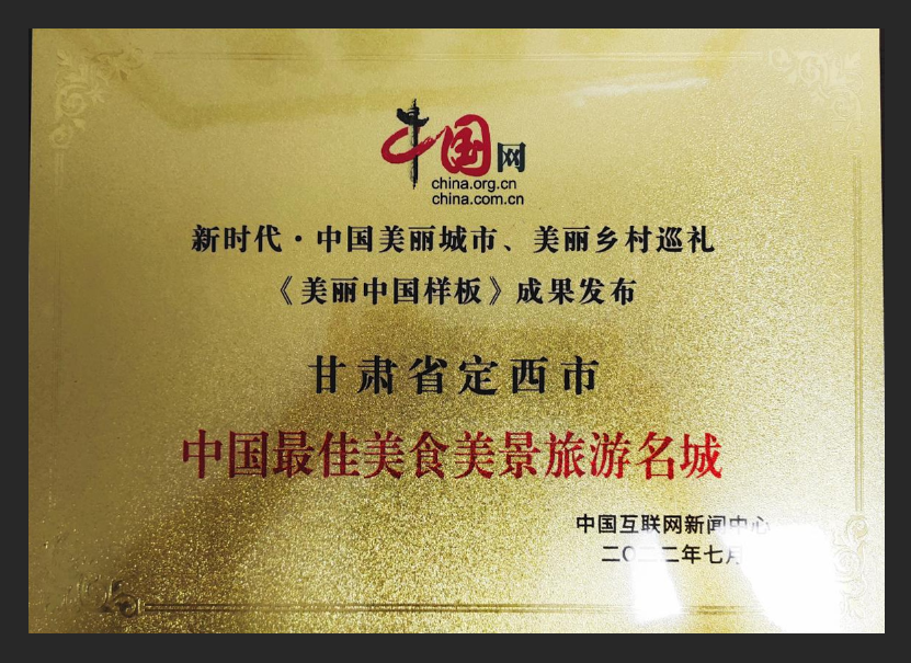 近日,第二届“新时代·中国美丽城市、美丽乡村巡礼”暨“2022中国文旅和景城融合发展峰会”在浙江省绍兴市柯桥区举行。在“美丽中国样板”成果发布仪式中,定西市获评“中国最美绿色休闲旅游名城”和“中国最佳美食美景旅游名城”。