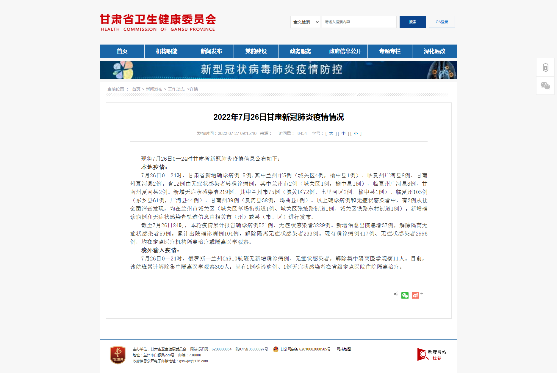 现将7月26日0—24时甘肃省新冠肺炎疫情信息公布如下: