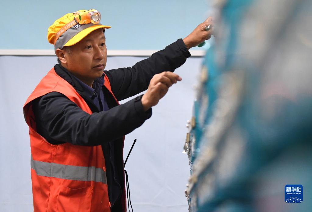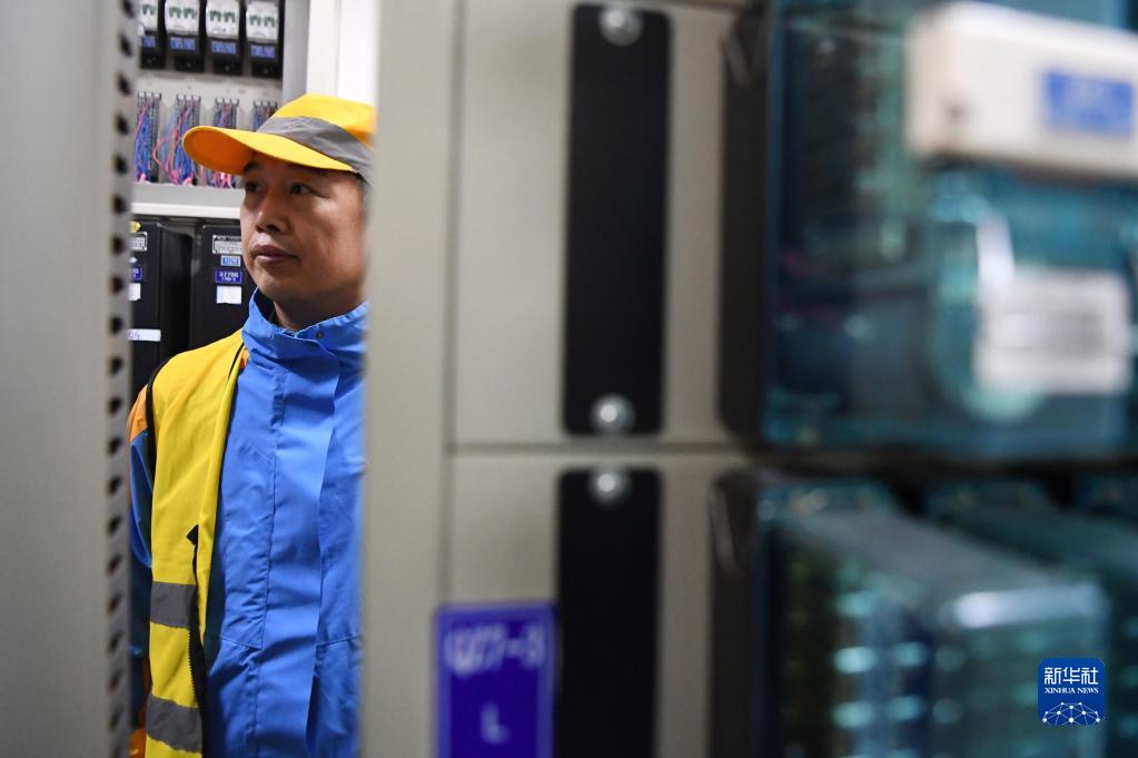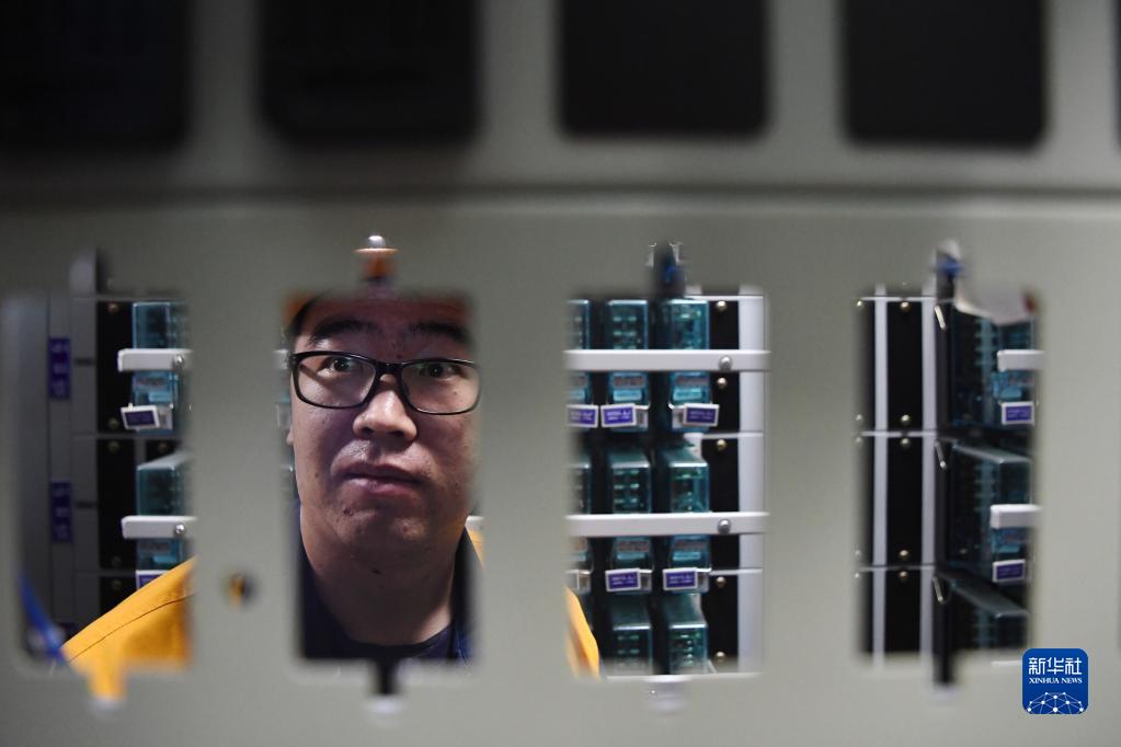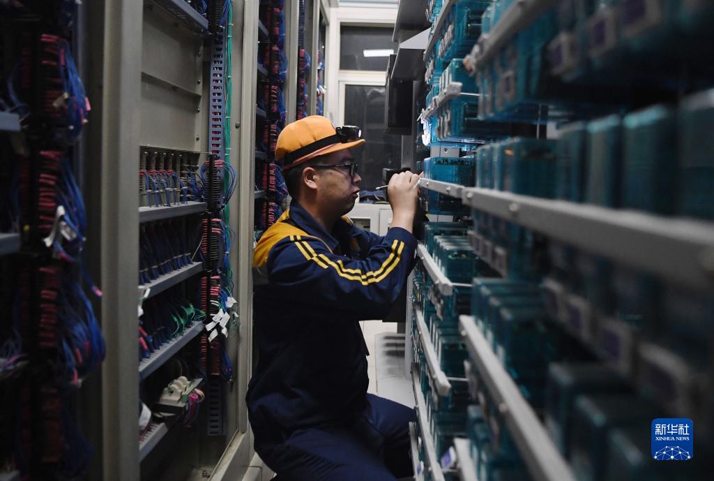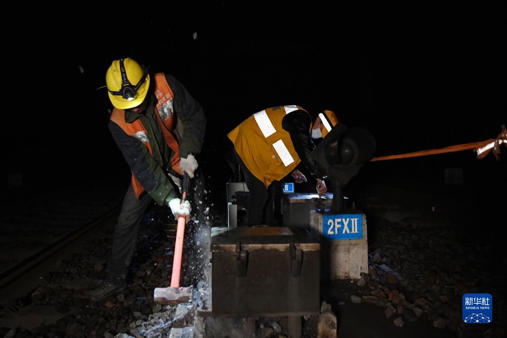 8月25日凌晨,中铁八局电务公司工程师刘小俊在兰新铁路玉石站查看设备运行情况。新华社记者陈斌摄