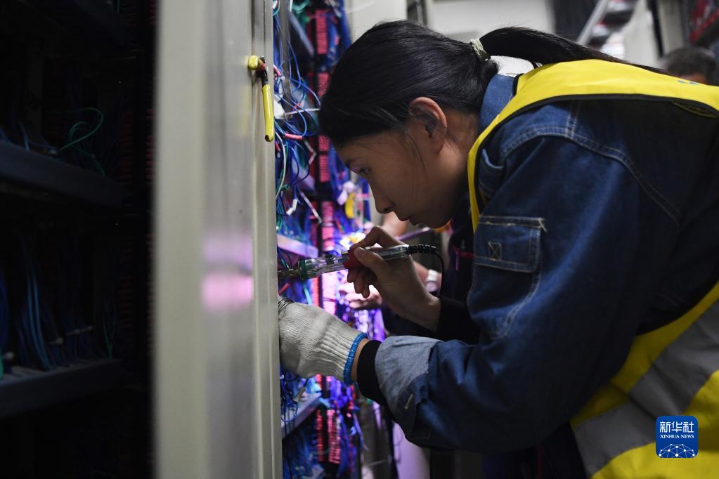8月25日凌晨,嘉峪关电务段信号工张源芝在兰新铁路玉石站查看设备运行情况。新华社记者陈斌摄