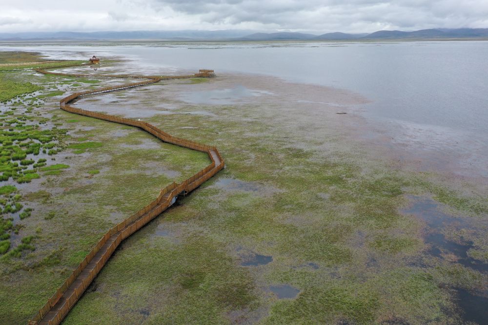 这是在甘肃省甘南藏族自治州碌曲县拍摄的尕海湖(无人机照片,2021年6月2日摄)。新华社记者杜哲宇摄
