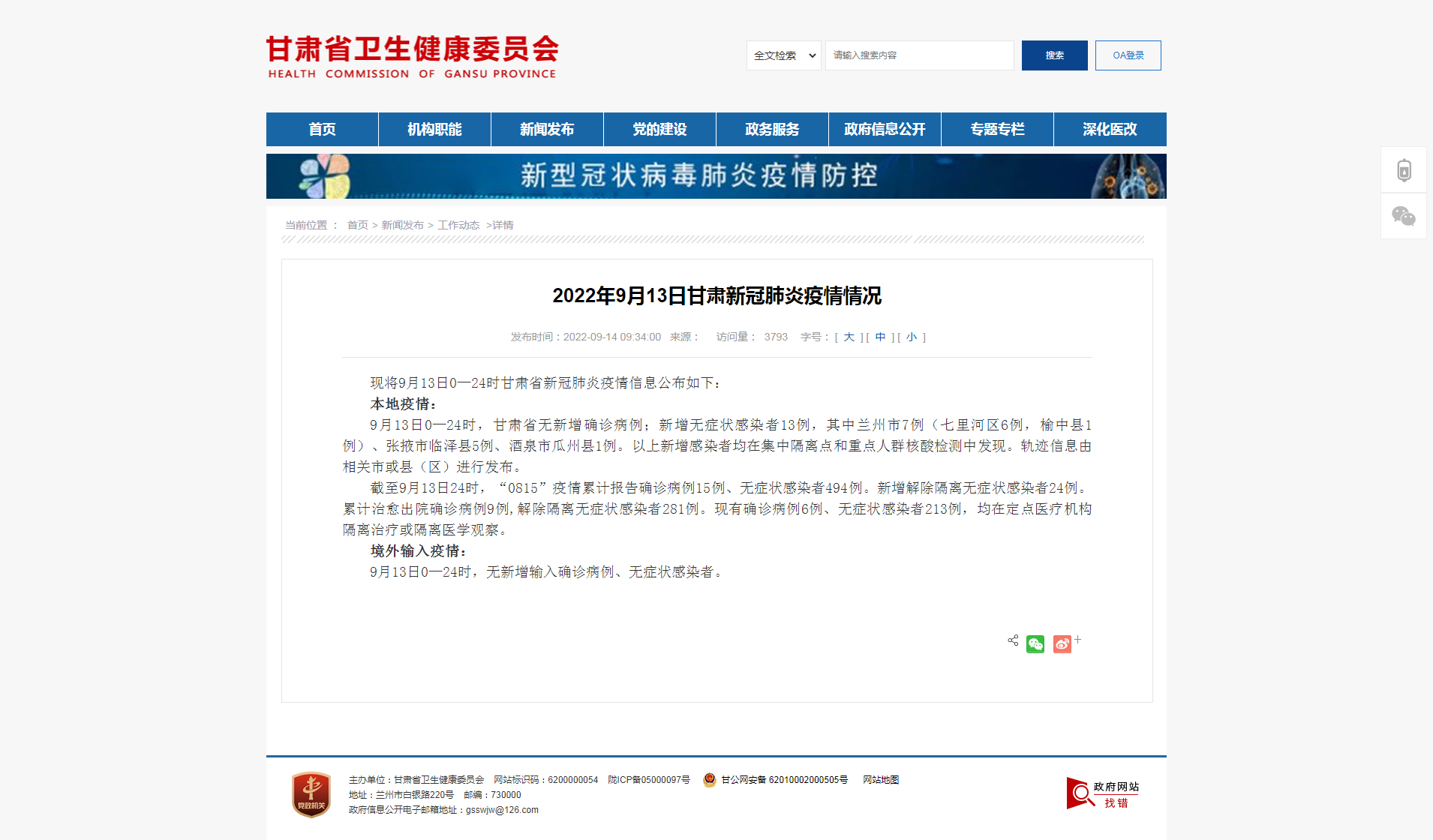 现将9月13日0—24时甘肃省新冠肺炎疫情信息公布如下: