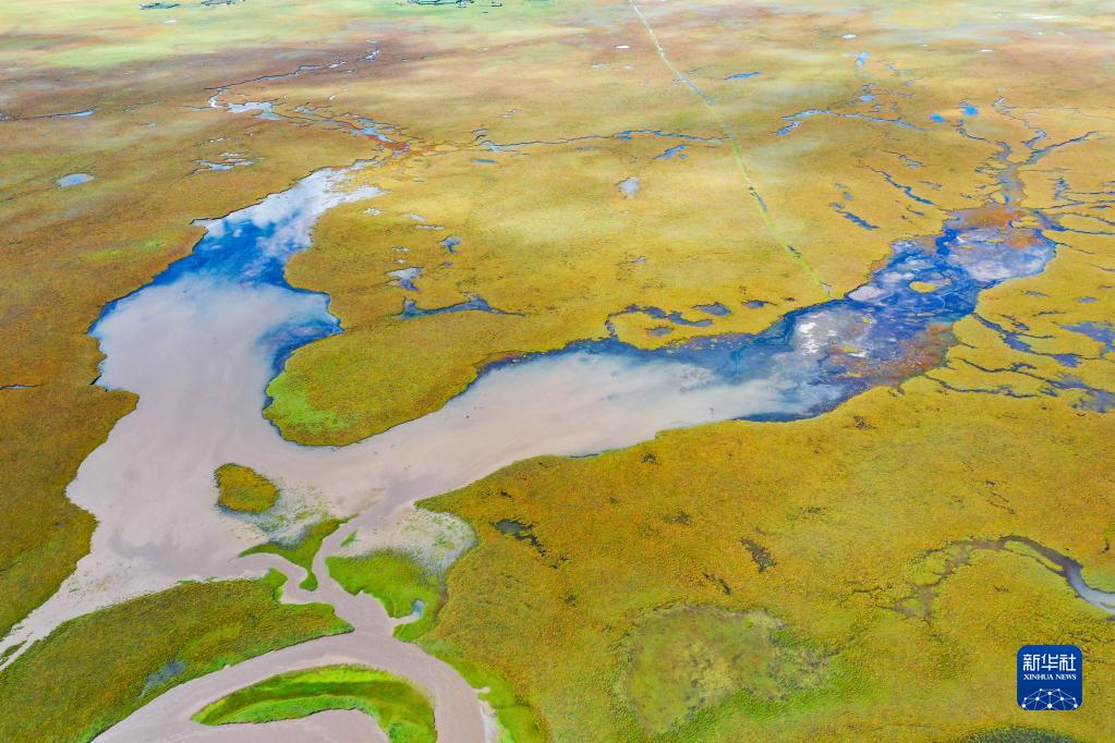 这是玛曲县阿万仓湿地内的河流和沼泽(9月17日摄,无人机照片)。