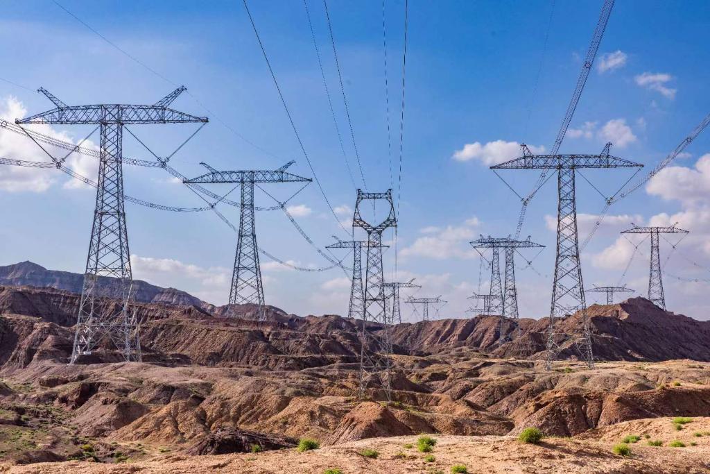 这是位于河西走廊的“西电东送”特高压输电线路。(国网甘肃省电力公司供图)