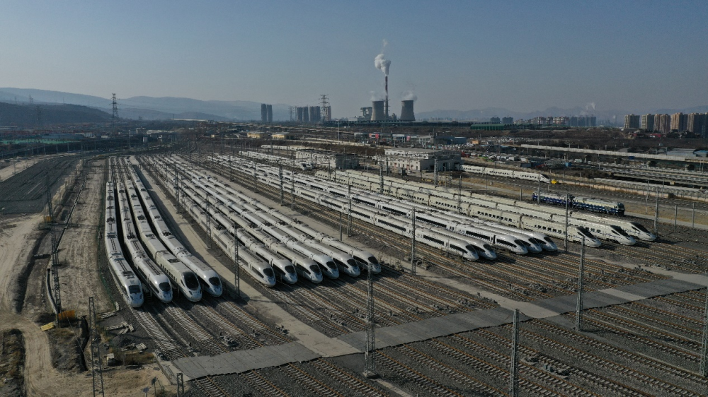动车组列车整齐停放在兰州西动车所。(中国铁路兰州局集团供图)