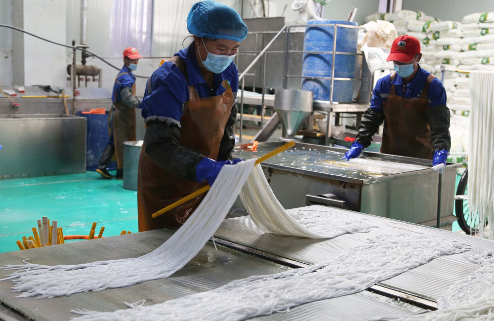 11月24日,甘肃省定西市安定区内官营镇一家粉条加工厂的工人在包装粉条。新华社发(王克贤摄)