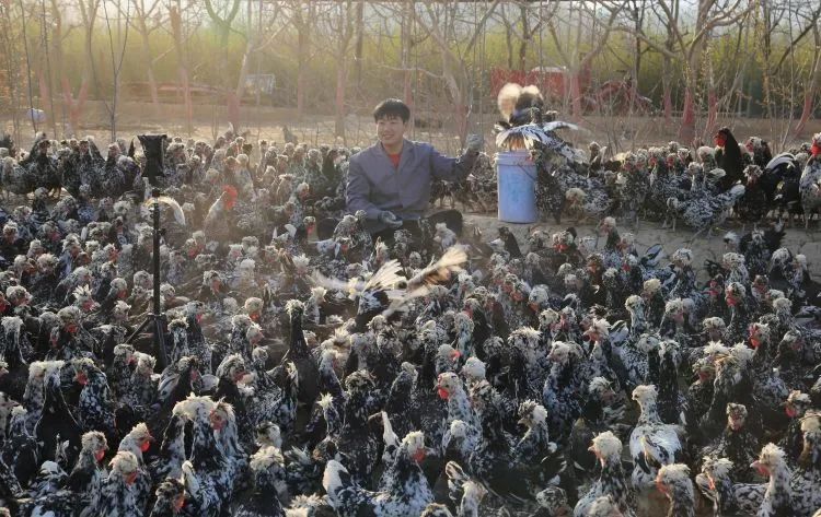 之后,他又紧跟热点,在冬奥会等重大节点,指挥鸡群在地上摆出冰球运动等图案,引发一波又一波的涨粉热潮。几年下来,他已经在各大平台累计涨粉100多万。在此期间,他的养殖规模持续扩大,目前有了4000多只乌鸡、近千只贵妃鸡,养殖场地也达到了70多亩,一年的鸡蛋销售额达两三百万元。