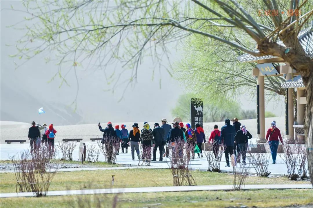 图片鸣沙山月牙泉景区游客往来不绝,欣赏大漠之春。