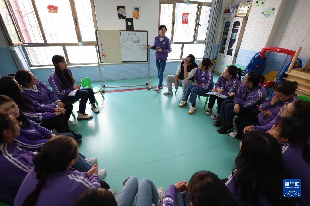 3月31日,特教老师陈进(中)与同事交流学习。新华社记者马希平摄