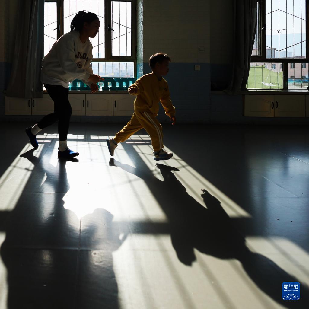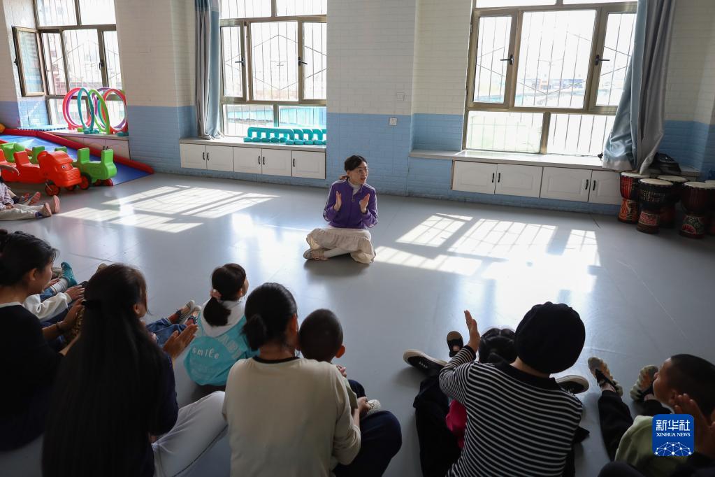 3月31日,在兰州欣雨星儿童心理发展中心,家长与孩子一起上康复训练课。新华社记者马希平摄