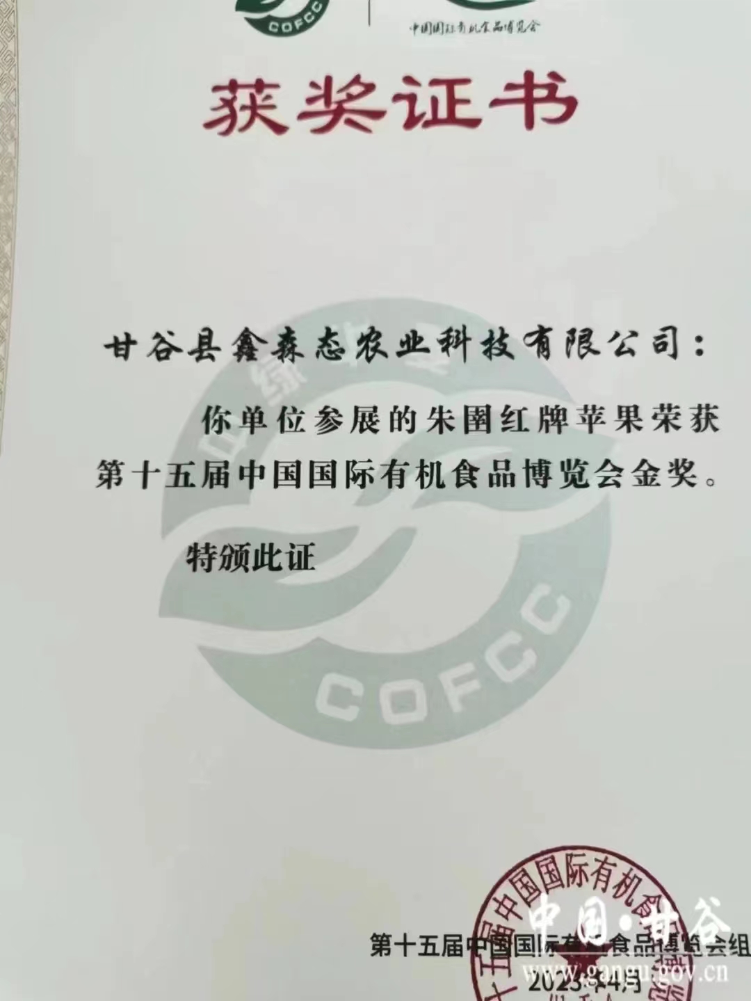 大西北网讯(首席记者刘建斌)记者从甘谷县县果品产业服务中心获悉,在近日举办的第二十二届中国(合肥)绿色食品博览会暨第十五届国际有机食品博览会上,甘谷县绿色食品和有机食品认证企业参加了展示展销,甘谷县京东农场选送的苹果样品分别斩获有机食品、绿色食品两个领域金奖!