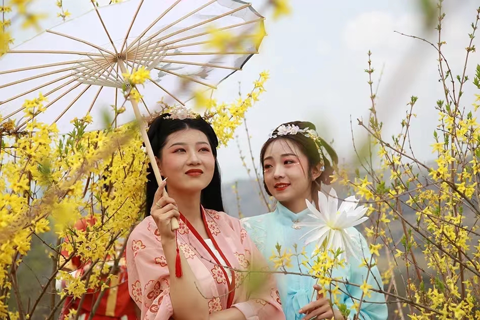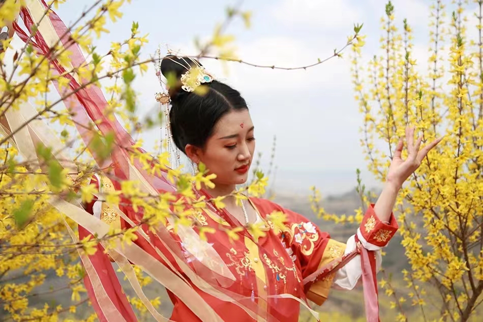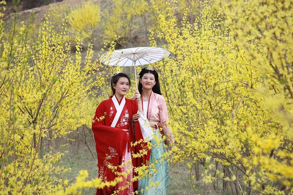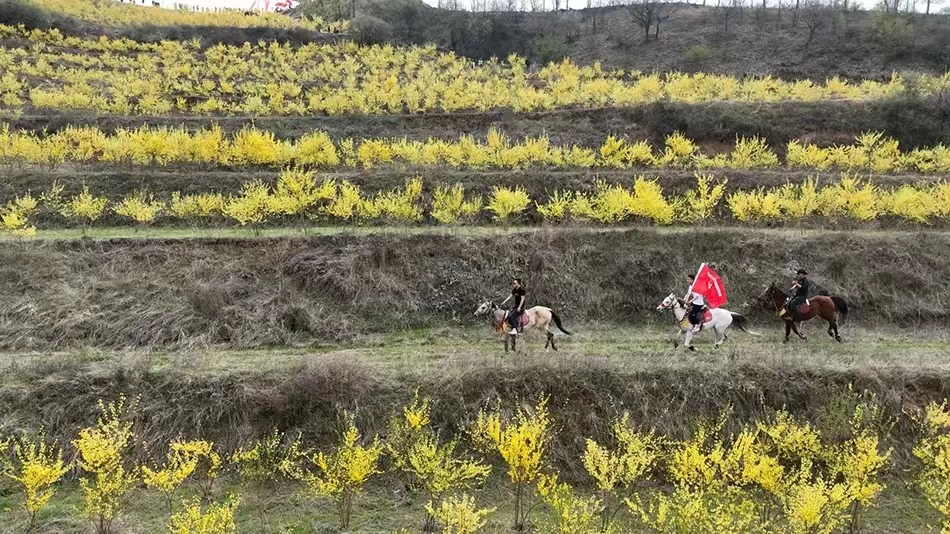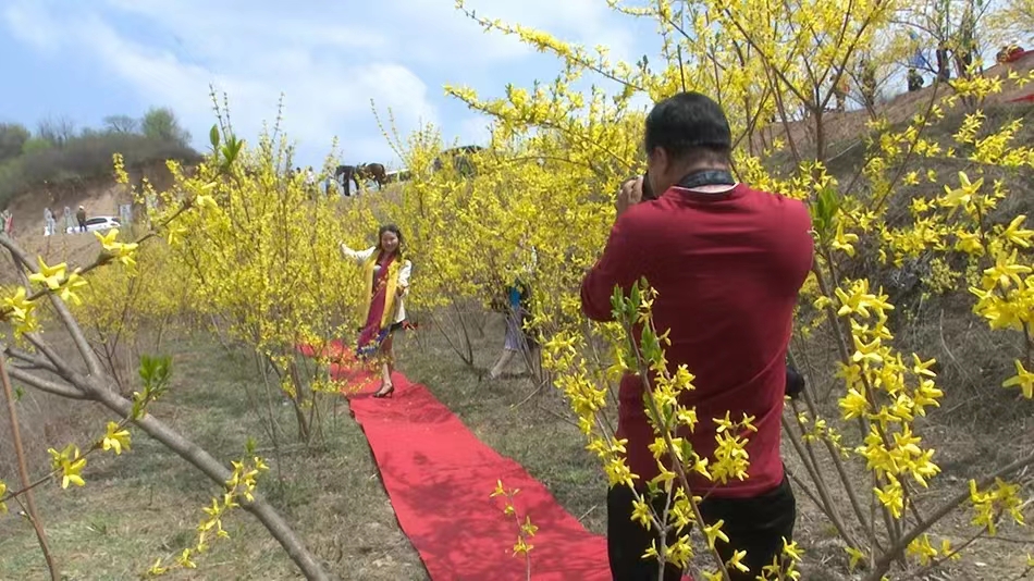 启动仪式现场,万亩连翘金黄漫山,点染勾勒出一幅“遍地金”的乡村田园画卷,麻山头村成了游客打卡地。游人徜徉在花海中,逐花追景,或策马扬鞭恣意宣泄,或置身美景听曲赏舞,或从鞭杆舞豪迈、剽悍的舞风中感悟秦文化的源远流长。据了解,此次文化节为期两天,期间将举办文艺演出、民俗汇演、汉服游园、骑马赏花、网红打卡、写生绘画、摄影展览、农副产品展示展销等活动。