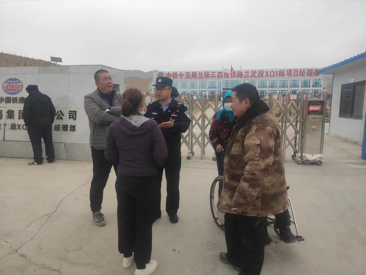 3月份,天祝县公安局打柴沟派出所民警在入户走访时了解到辖区上河东村村民张某某在朵什镇石头沟高铁隧道内干活时意外受伤致残导致截瘫,属3级伤残。经民警多方核实后得知,当时张某某受雇于湖南省娄底市某有限公司,该公司为中铁十五局中标单位,负责承建朵什镇石头沟高铁隧道,生产事故发生后,张某某家属与该公司多次协商后,均未达成赔偿协议。