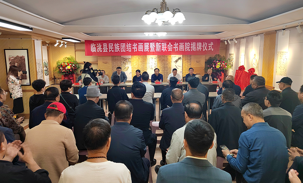 6月9日上午,由临洮县委统战部主办、县新联会书画院具体承办的临洮县民族团结书画展暨新联会书画院揭牌仪式,在新华书店三楼如期举行。县委统战部主要领导、临洮县书画爱好者、县新联会部分会员、民族宗教界代表人士60余人参加仪式。