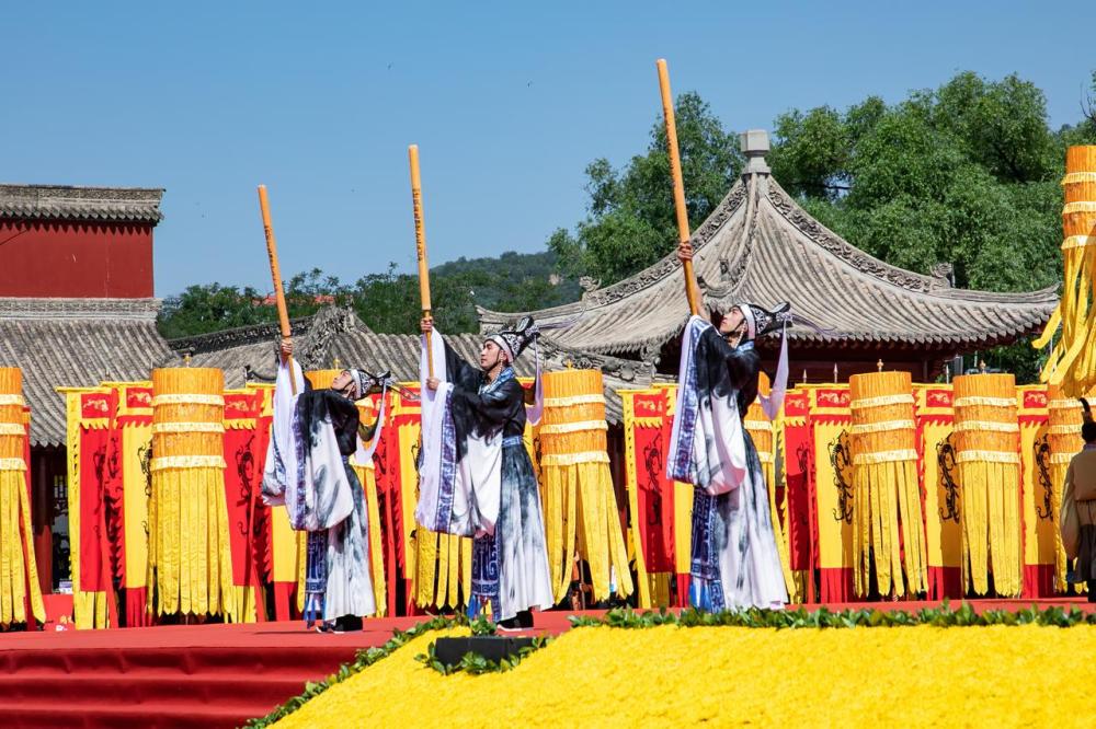6月22日,演员在2023(癸卯)年公祭中华人文始祖伏羲大典上表演乐舞告祭仪式。