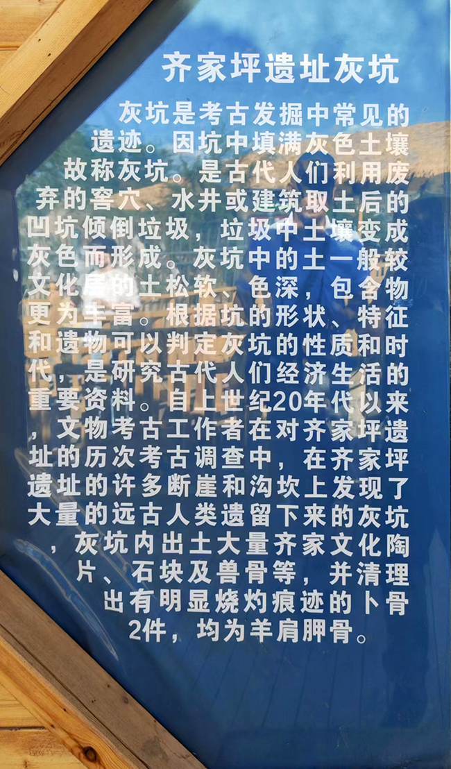 出广河县城,沿广通河北岸东北行,车子在盘山公路上绕行,齐家坪遗址、半山遗址便在玉米丰茂的原地边缘。看着考古坑中距今约4000年上下的人类遗骨、陶器、残片和崖坎上细细的平行灰线等,听着讲解员的讲述,远古与现实交织在这里。历史的风与自然的风,吹拂着这片散发着远古文明之光的地方。在崖边观景台俯瞰眺望,洮河若琉璃碧带浩浩北去,对面田畴葱茏,为临洮县辛店、新添、衙下一带,分布着众多马家窑、半山、马厂类型的文化遗存,飞禽走兽出没于此,人类的狩猎、耕作活动在此开端,这里也因而成为甘肃省发现的较早的古人类遗址之一。联想到方圆百里曾发掘出的恐龙、铲齿象等古生物化石,几百万年前,这里一定是水波浩渺,林草铺天,粼粼碧波,微澜起伏,巨象蹁跹,水鸟翔集。