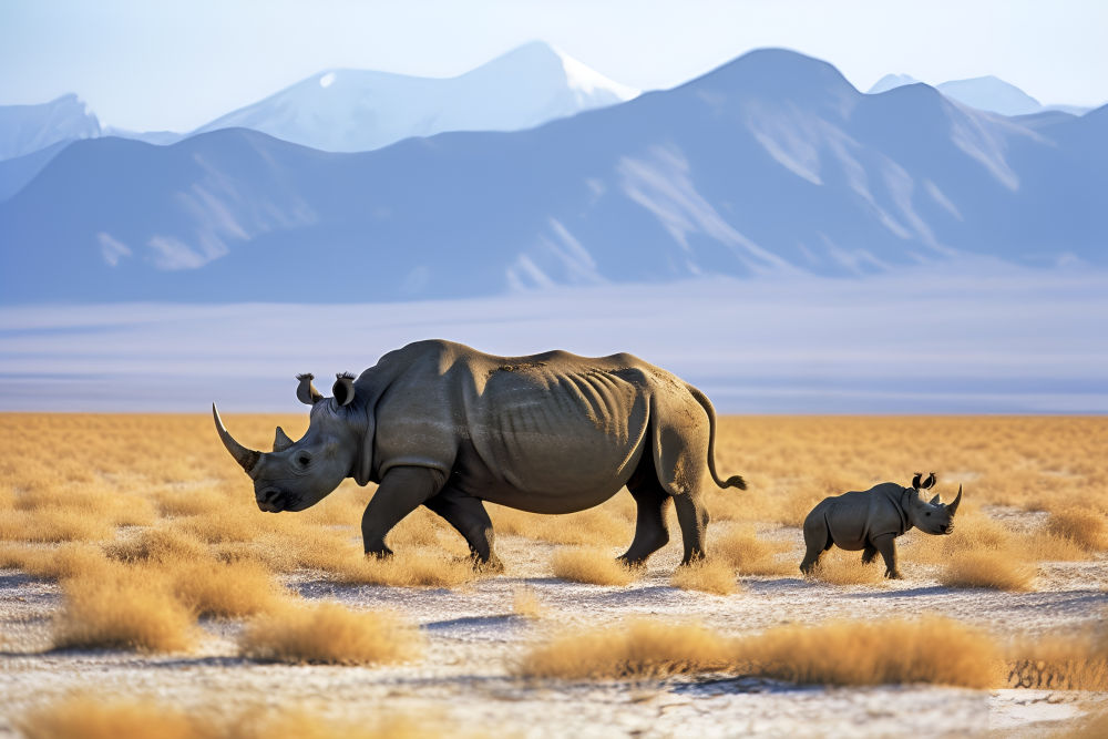 远古动物种群复原图:甘肃黑犀。
