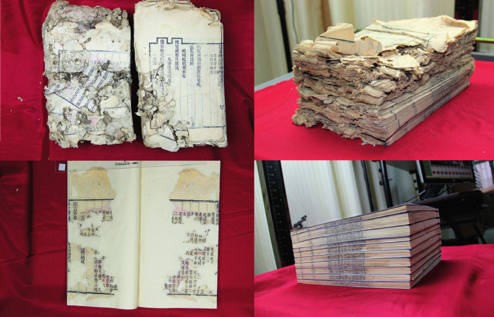 上面 2 张图为甘肃省图书馆藏《钦定礼部则例》修复前的画面;下面 2 张图为甘肃省图书馆藏《钦定礼部则例》修复后的画面 甘肃省图书馆供图