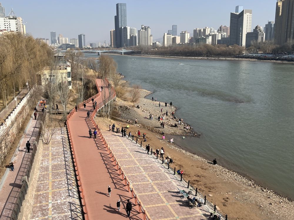 2023年2月25日,人们在兰州的黄河岸边游憩。新华社记者张玉洁摄