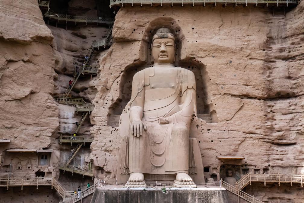 这是9月21日拍摄的炳灵寺石窟第171龛唐代石胎泥塑大佛。新华社记者 郎兵兵 摄