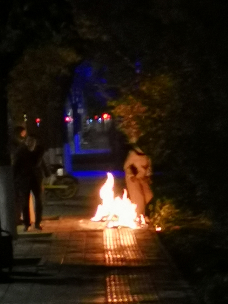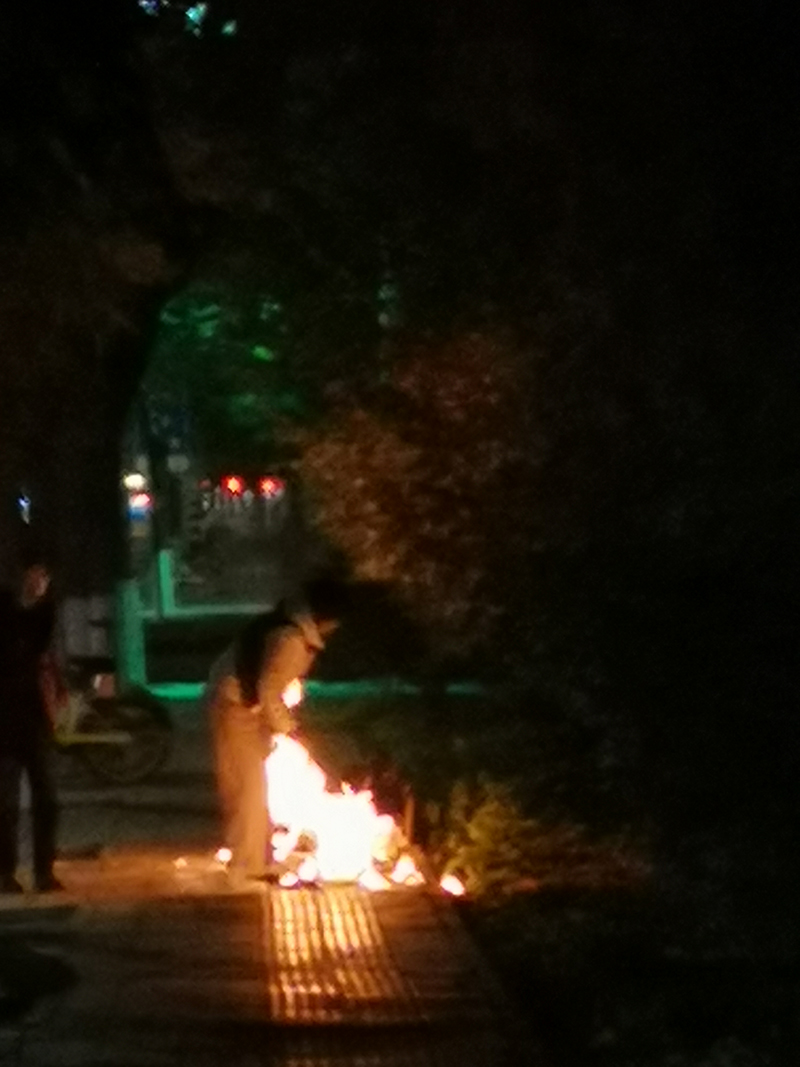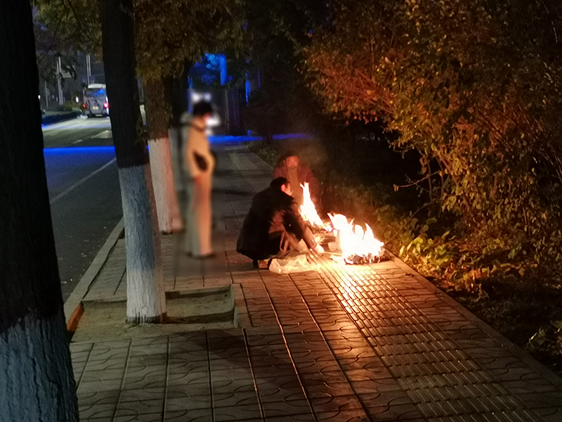大西北网讯(记者 王志俭) 10月13日正逢农历传统寒衣节,晚上记者在雁塔所住小区附近街上走了一圈,发现到处烟雾缭绕、火苗攒动,空气中弥漫着一股呛人的气味,令人极不舒服。