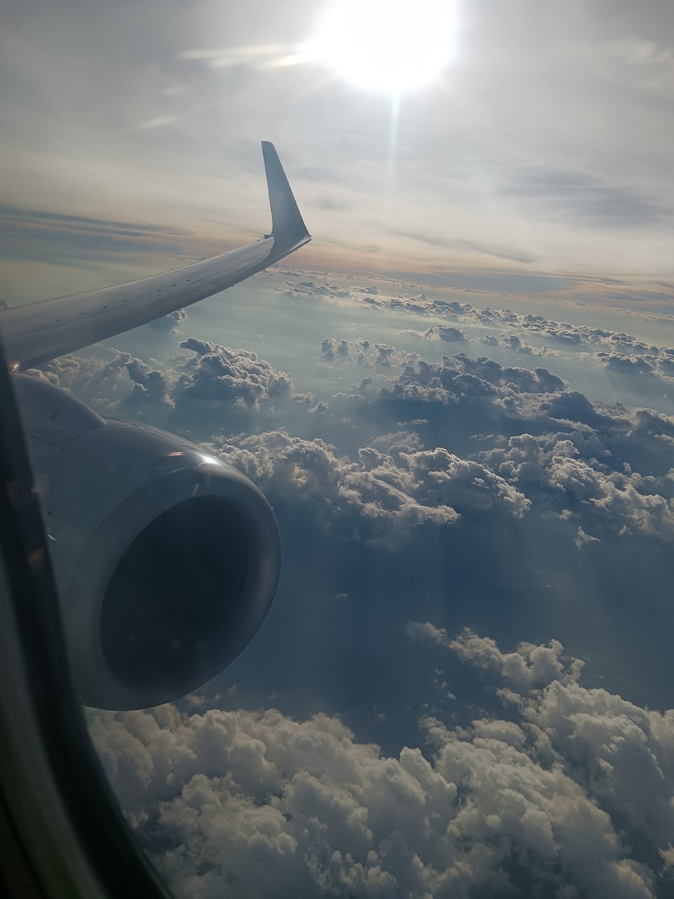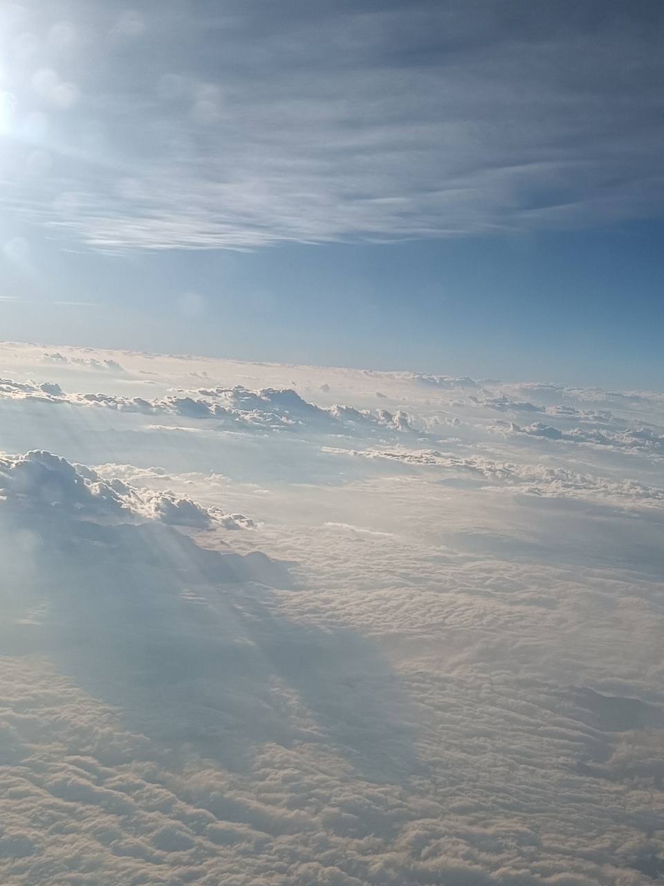 也须是应了云南的“云”字,飞机一跃,离地即入云层,此一程,数千里,云隔下界,满目唯云。颠波之中,窗外朦朦,云雾之中,昂扬向上,刹那间,穿云破雾而出,红日又复眼前。
