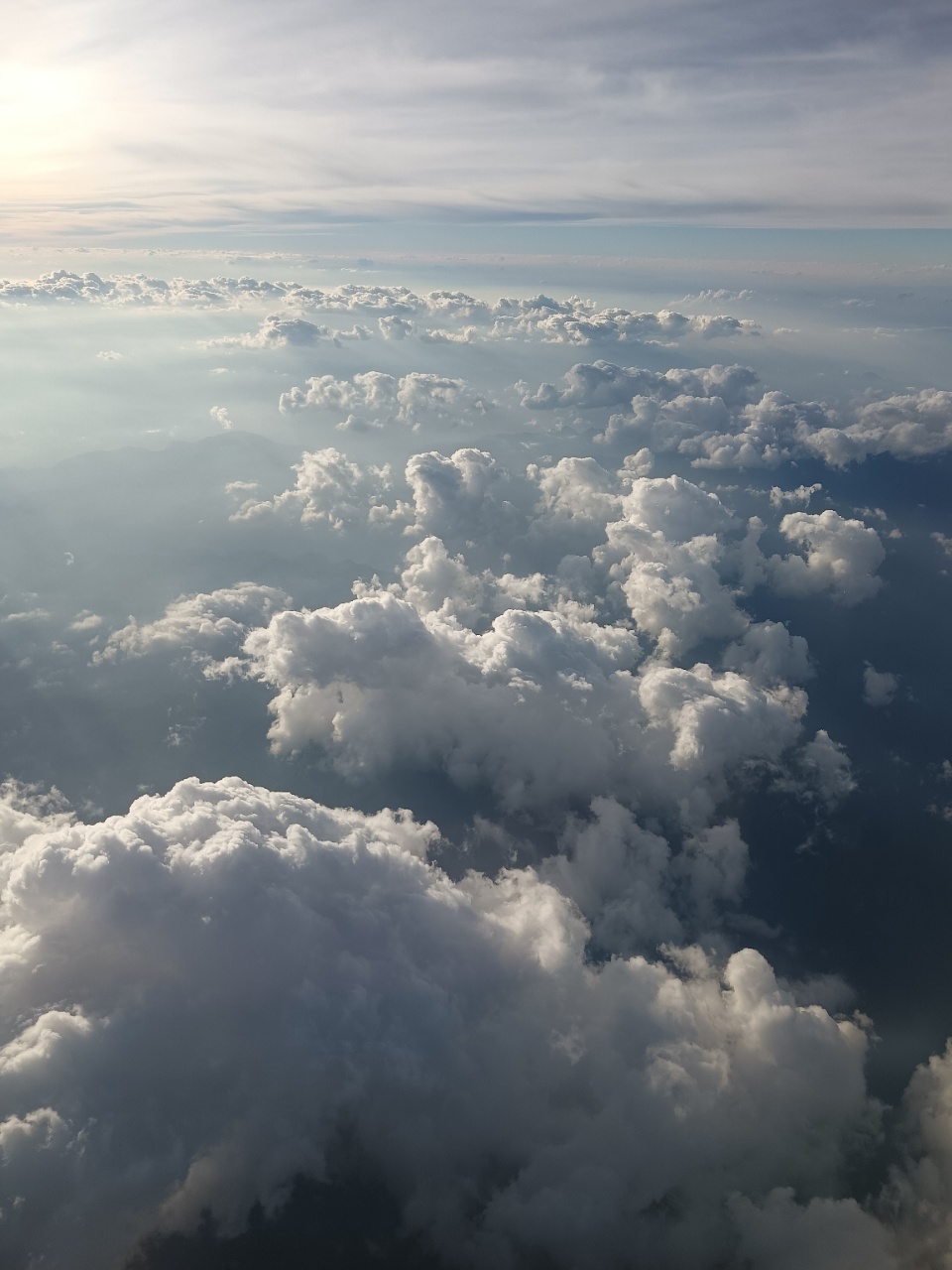 云端之上,数千里程,皆云上之天,绚幻之天,炫彩之天,奇景正美,叚思正与白云齐飘,飞机却已降出云层,未即复见山河阡陌,人间城廓。
