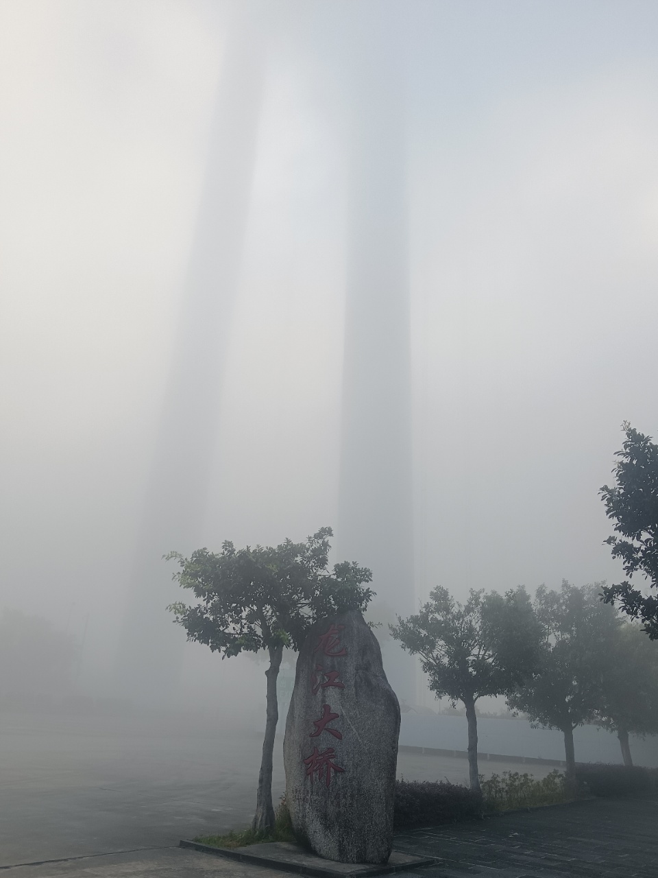 去时和风丽日清气乾坤,万千景象在眼里,畅观以乐。归时云雾漫天,大桥身影朦胧中,隐约之中,如梦似幻在云天。一进一出,一桥两景,皆入眼中,难得!难得!岂非天缘有幸,得此大桥变幻之姿?