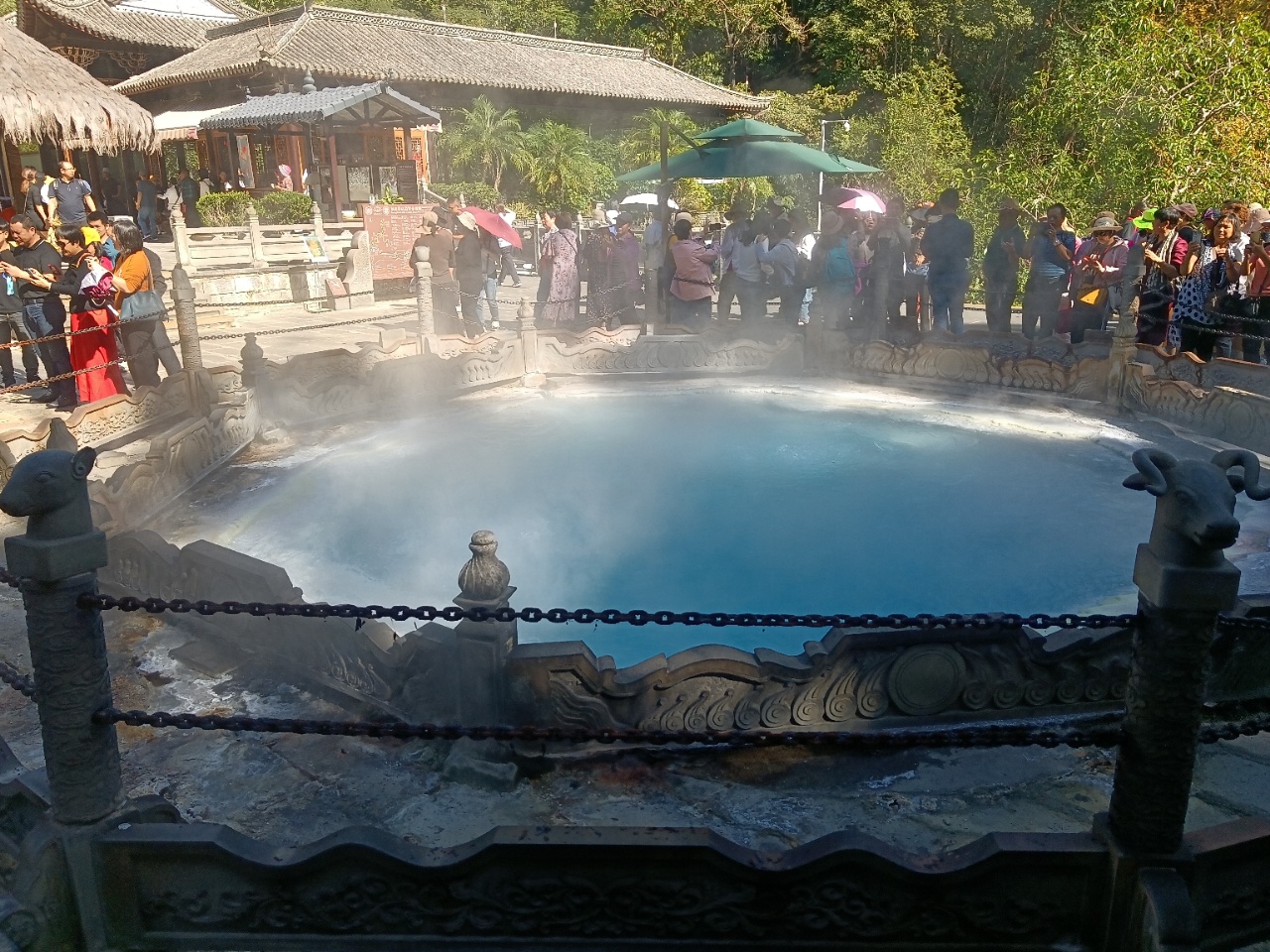 “仙人澡堂”也称“仙女池",据说是神仙们沐浴的地方。现如今旅游经济盛行,已被开发成无数个特色各具,水温有别的温泉池塘,与周边配套起的现代化宾馆餐厅,形成规模庞大的消费之处,服务来宾,拉动经济,解决就业,推销产品,很值得学习。来此一游,温泉沐浴自是向往所在。可惜时间促急,只能浸身于一二之泉池,略舒筋骨。其余多泉,唯眼中流影,心中留憾了!