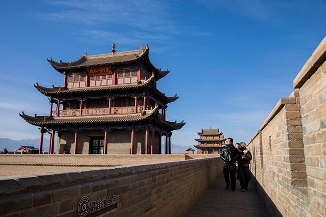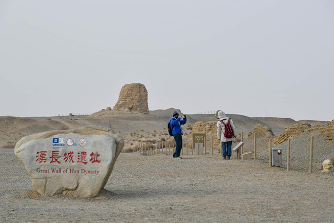 游客在甘肃省嘉峪关市的嘉峪关文物景区游览(12月12日摄)。